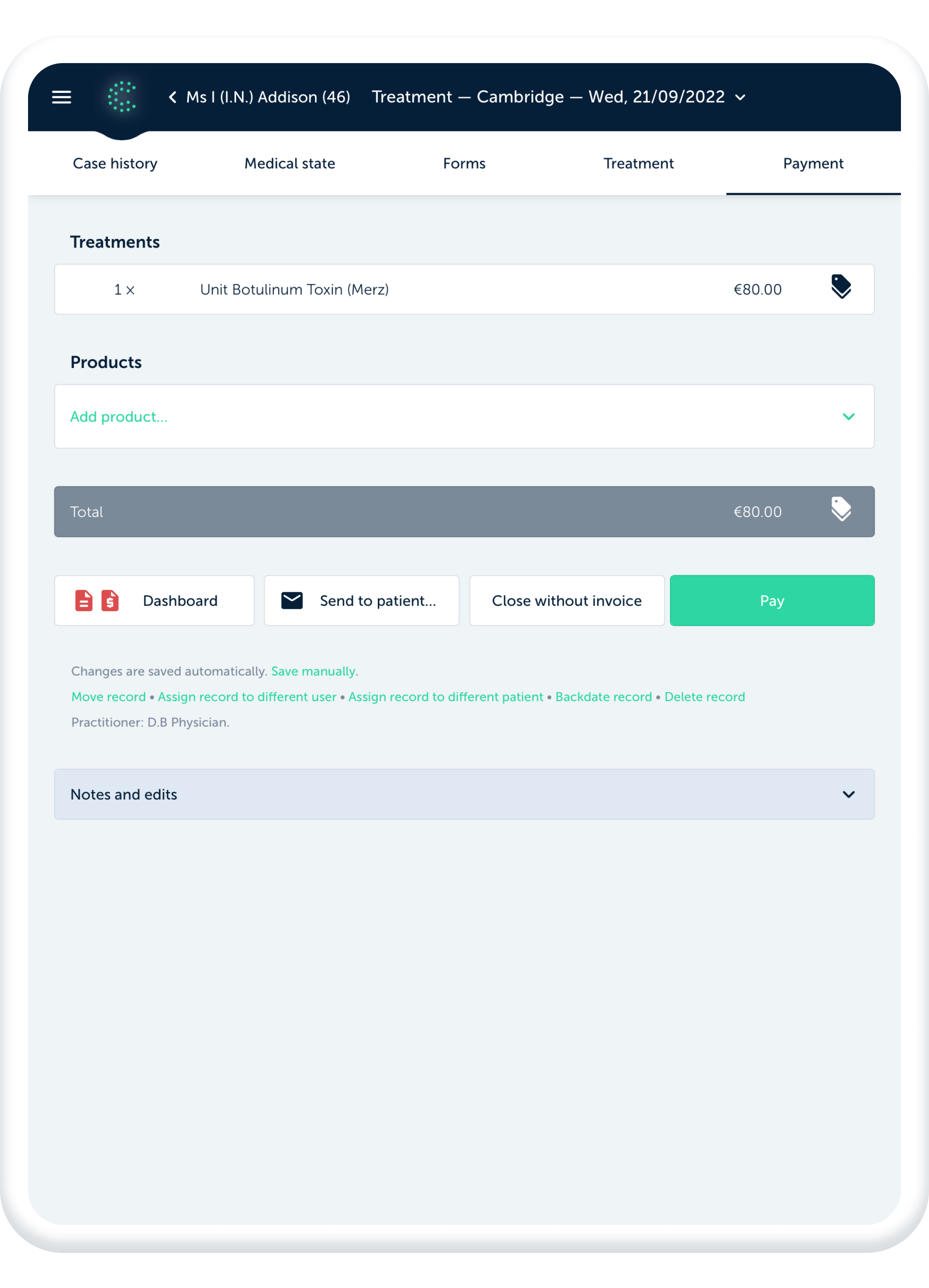 Vårt tilpassbare elektroniske pasientjournalen (EPJ)-system kan registrere alle behandlingene du utfører, fra injectables-behandlinger til komplekse operasjoner.